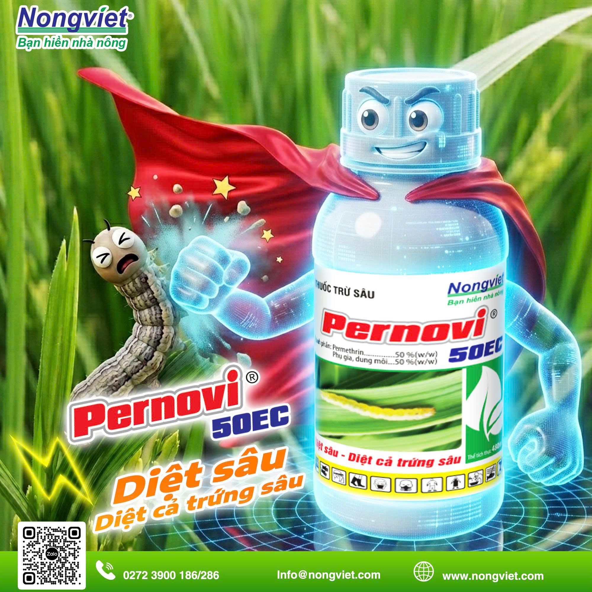 Công ty Cổ phần Hóa chất Nông Việt luôn đồng hành cùng bà con nông dân với phương châm “Bạn hiền nhà nông”. Sản phẩm PERNOVI 50EC được sản xuất trên dây chuyền hiện đại, đảm bảo: