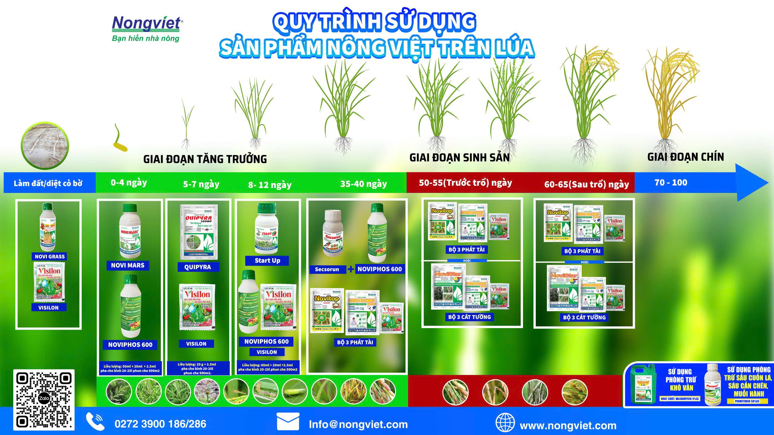 Quy trình sử dụng sản phẩm Nông Việt trên cây lúa