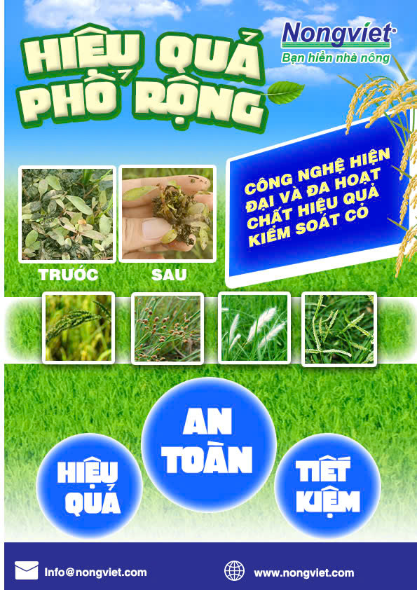 *Lưu ý: Tháo cạn nước trước khi phun, sau khi phun 1-2 ngày đưa nước vào ruộng và giữ nước ổn định 2-3 ngày (ngập cỏ không ngập lúa). Thuốc có thế phun được với máy bay không người lái.