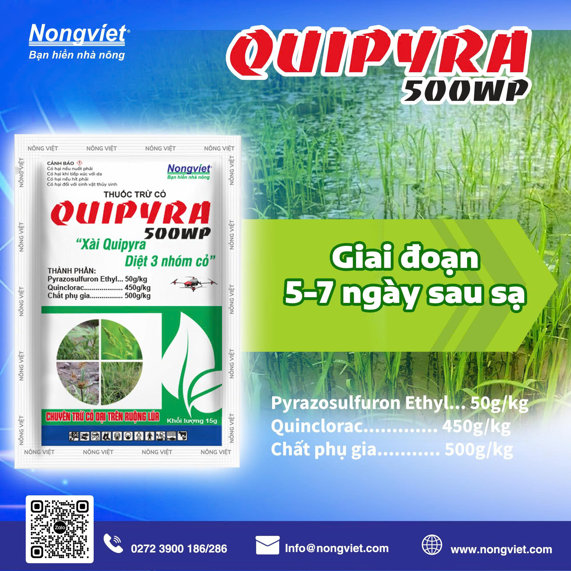 - Cách sử dụng: Phun hỗn hợp QUINPYRA và VISILON khi cỏ đã mọc, có 1-2 lá. Cần đảm bảo ruộng khô ráo trước khi phun để thuốc bám dính tốt hơn.