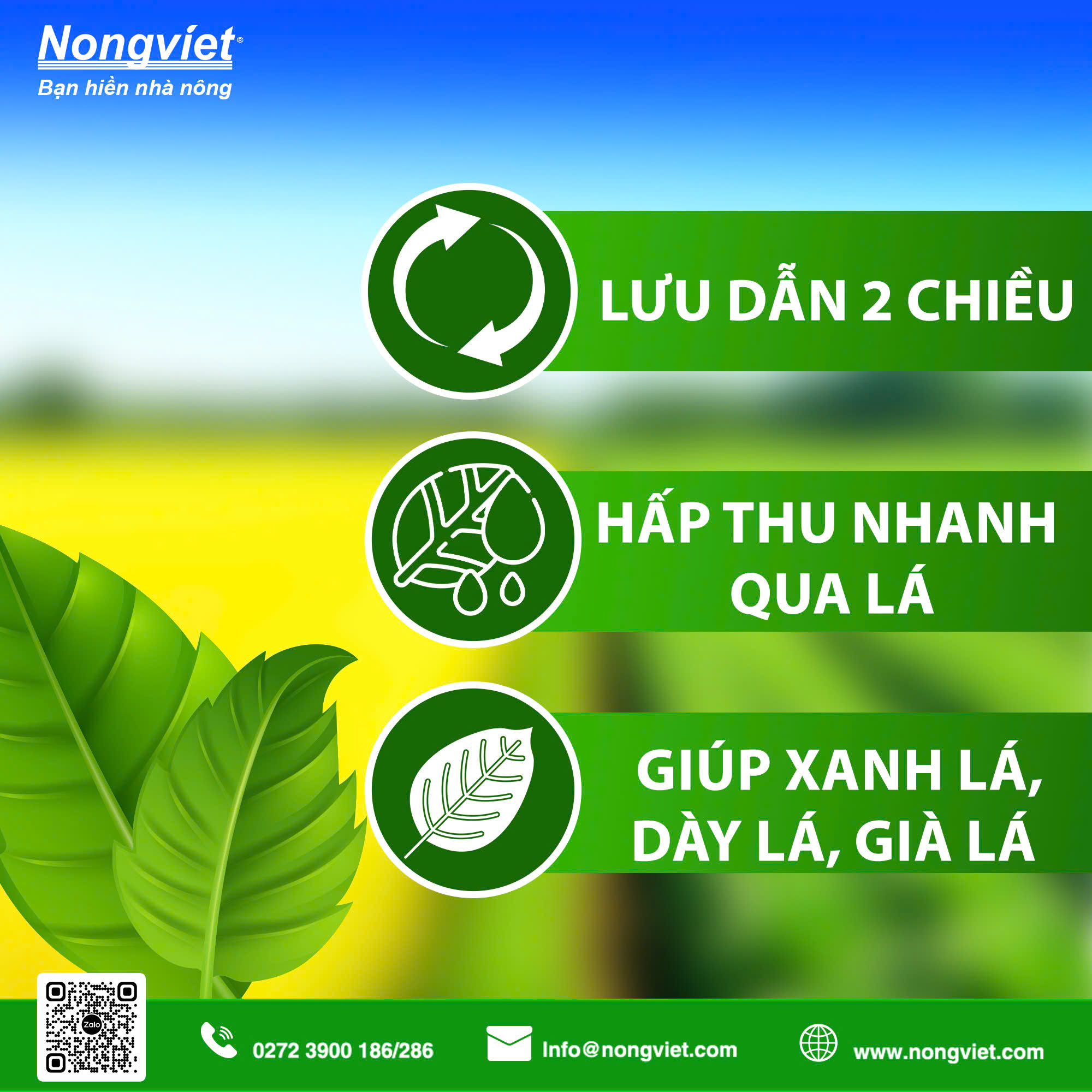- Cơ chế lưu dẫn độc đáo: Khi sản phẩm được phun lên lá, các dưỡng chất sẽ nhanh chóng thẩm thấu và di chuyển xuống rễ (lưu dẫn xuống) để bảo vệ bộ rễ, và di chuyển lên ngọn, lên chồi non (lưu dẫn lên) để bảo vệ lá và hoa trái.
