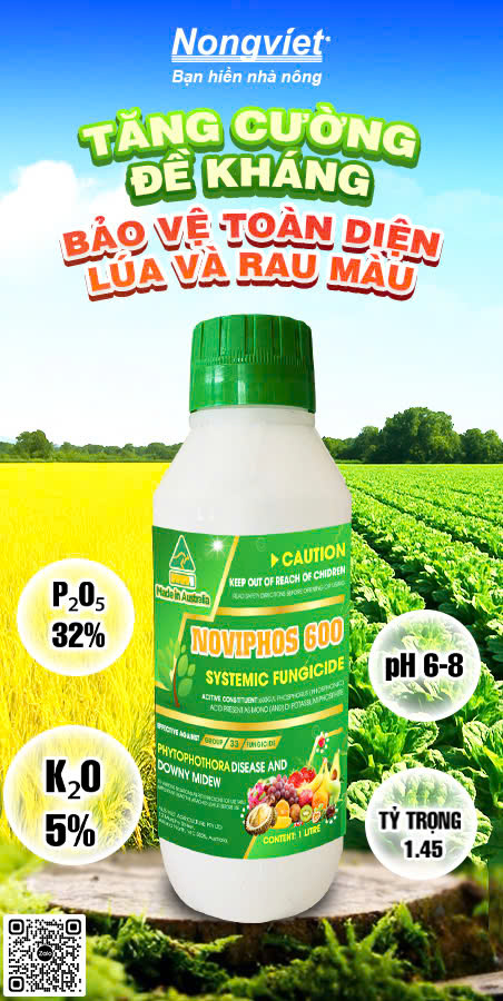 NOVIPHOS 600 là hơn cả một sản phẩm nông nghiệp; đó là một chiến lược canh tác thông minh của thời đại mới. Với khả năng “Vừa Dinh Dưỡng – Vừa Kích Kháng Nấm Bệnh” thông qua cơ chế lưu dẫn 2 chiều và kích hoạt khả năng tự vệ của cây, sản phẩm mang lại sự an tâm tuyệt đối cho bà con nông dân.